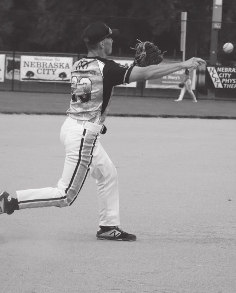 Zack Tesarek fires the ball from third base. Photo by Kirt Manion .