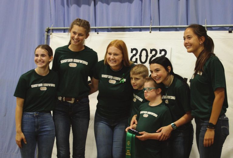 Showmen and buddies pose with their ribbons after the competition concluded. Photo By Julie Davis .