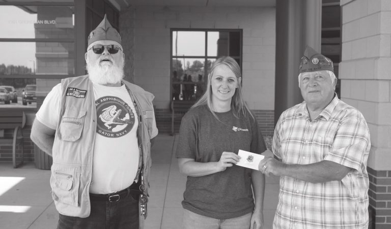 From left, Secretary Roger Kopf and Commander Carl Christensen, right, of the veteran’s organization known as The Forty & Eight, present the official 2022 Nurse’s Training Pin depicting the Vietnam Veterans Nurses Memorial in Washington, D.C., to Lisa Connell of Nebraska City. Connell recently received her registered nursing certification after having completed the training course at Iowa Western Community College (IWCC) in Council Bluffs, Iowa. In addition to the pin, Connell received a grant from the local chapter of The Forty & Eight, and a matching grant from the national headquarters of The Forty & Eight’s national nurse training program, which was paid directly to IWCC. Connell is working as a registered nurse at CHI Health St. Mary’s in Nebraska City.