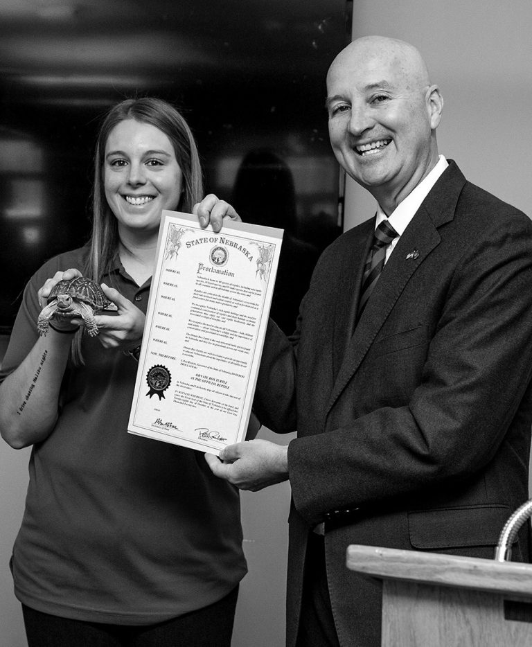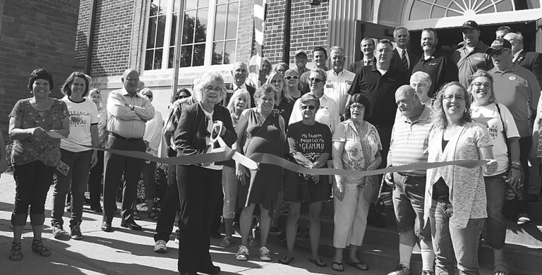 Gloria Glover cut the ribbon on Friday, Aug. 23, 2019, to celebrate the completion of the first phase of renovation at the Nebraska City Veterans Memorial Building Project. Thanks to a grant from the Paul, John, Anton and Doris Wirth Foundation, Pella installed new doors and windows on the building, which will be open for tours next week in honor of its restoration being completed and Veterans Day.