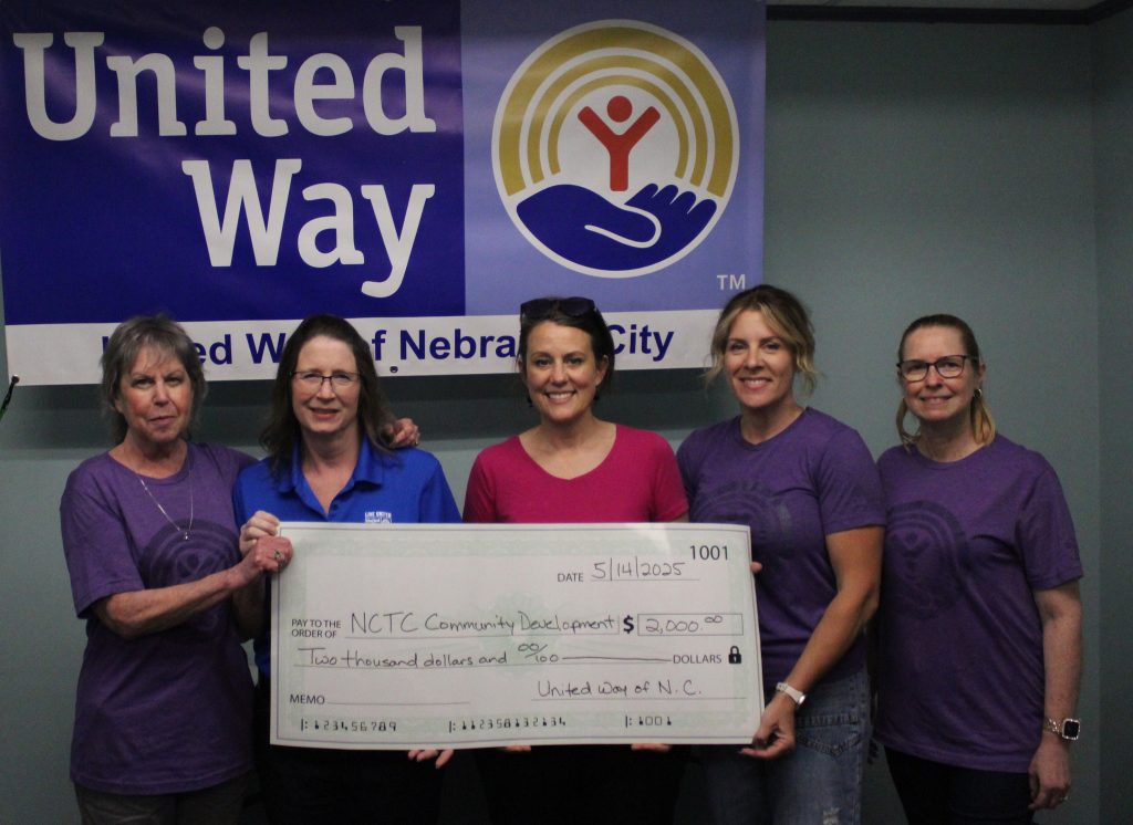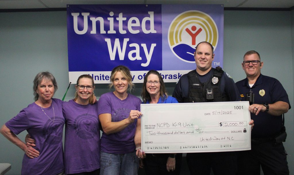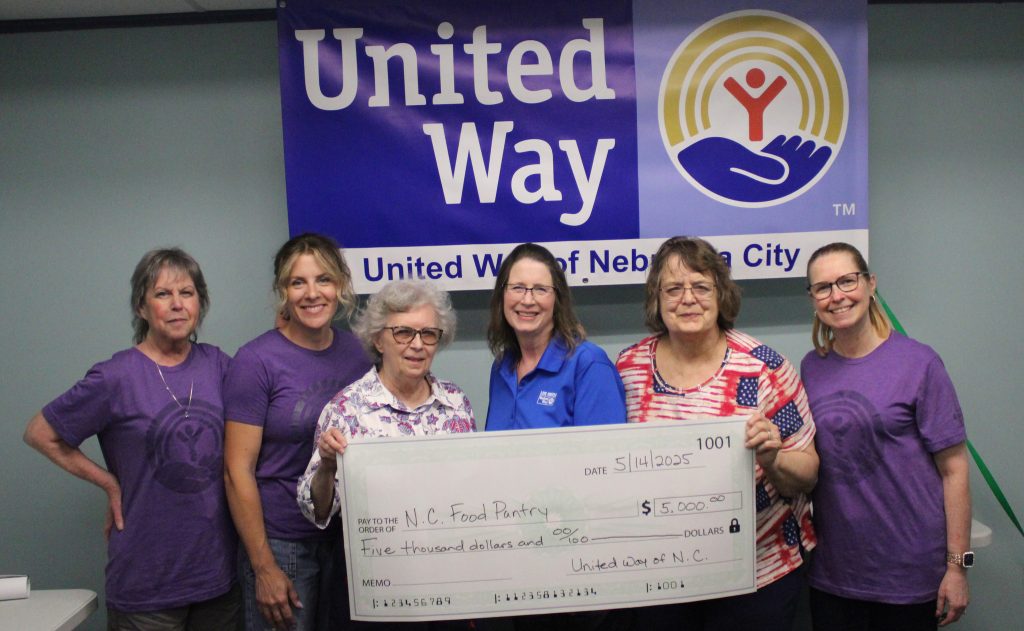 United Way representatives, from left, Susan Dominguez and Donnette Hoyle, Nebraska City Food Pantry representative Mary Stevenson, United Way representative Janis Riege, Nebraska City Food Pantry representative Keitha Thomson, and United Way representative Kerry Kattelman gather for a check presentation to the pantry.United Way representatives, from left, Kerry Kattelman, Janis Riege, and Donnette Hoyle present a check to Nebraska City Baseball Association representatives Marty Stovall and Todd Hoyle.